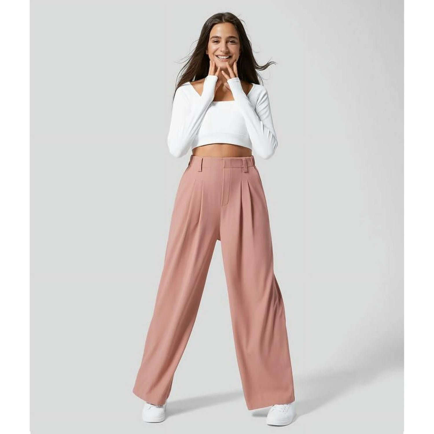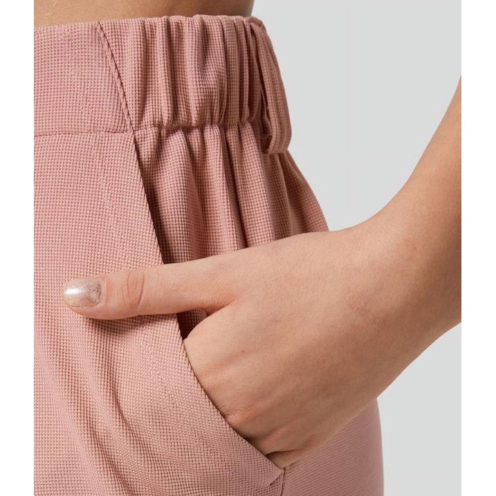 High Waisted Plicated Side Pocket Wide Leg Waffle Work Pants