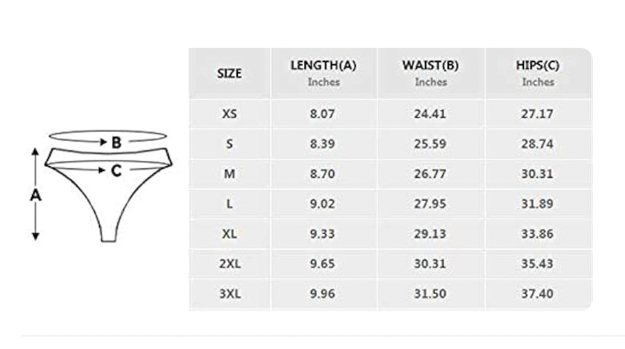 XL/XXL : Chest 38.5 - 40.5in”, Waist 30.5-32in”, Hips 41.5-42.5in”